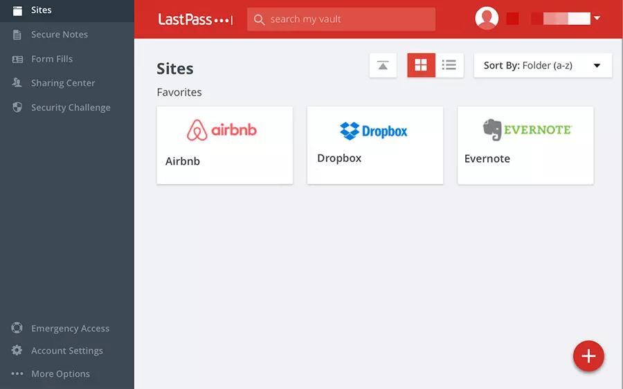 LastPass password manager works via a browser extension available for Chrome, Firefox, Safari, Opera, and Microsoft Edge. After you have created a secure master password, LastPass works independently in the background. The program then saves the passwords. All information is stored in your personal safe, where you can view all passwords and access your data. Here you can also note down the passwords and have the option to share the data with others. You can also sort your data into folders (e.g. e-mail services or online shops).