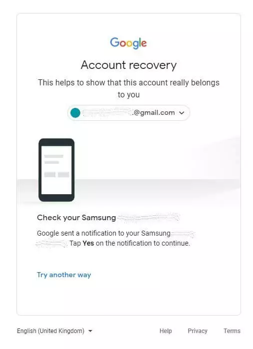 Once you’ve entered the last password you remember, Google will ask you to confirm the password recovery request. The confirmation will be sent to the recovery device registered in your Google account. For most users, this will be their smartphone. Your smartphone will now display a message asking you to select “Yes” to confirm that you are trying to reset your password on the desktop version.