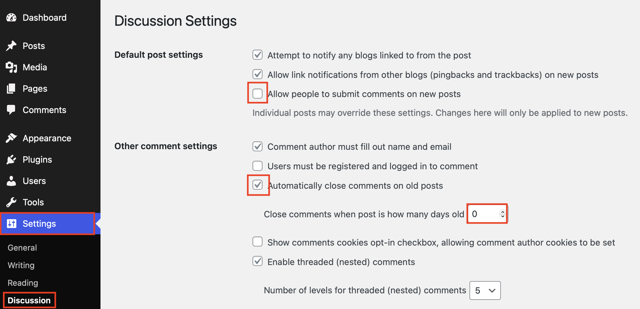 Here’s how to turn off comments for all of the posts on your WordPress website: