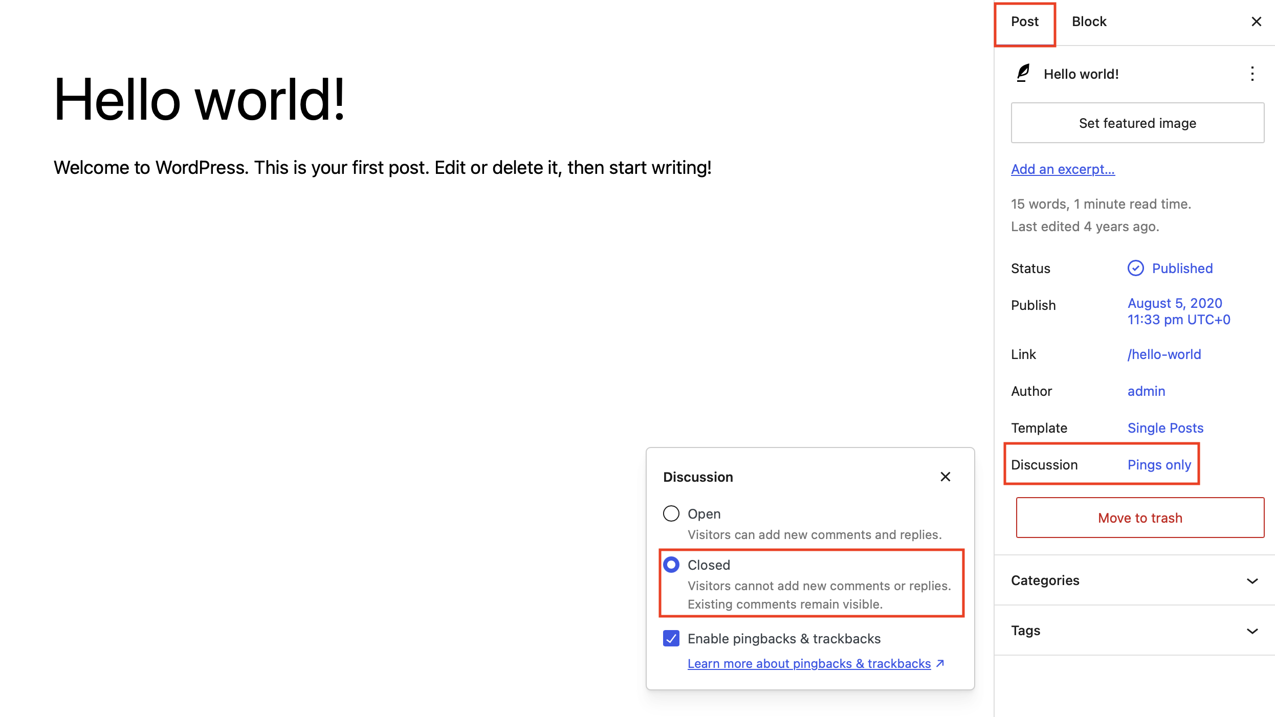 Another very simple way of enabling or disabling comments on your WordPress site is to use Gutenberg, which is the default editor in the latest versions of WordPress.