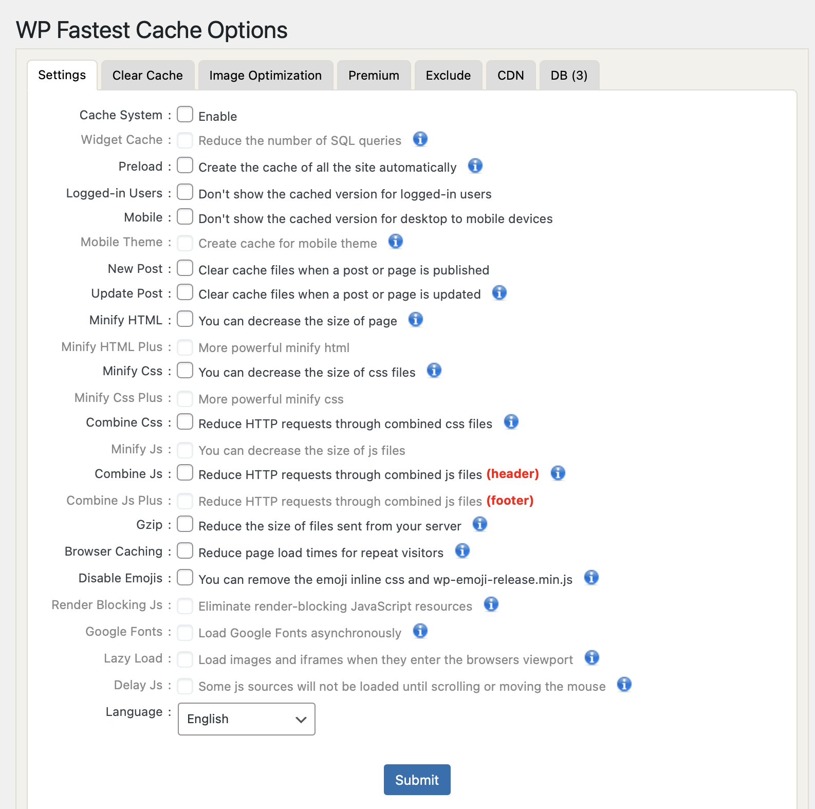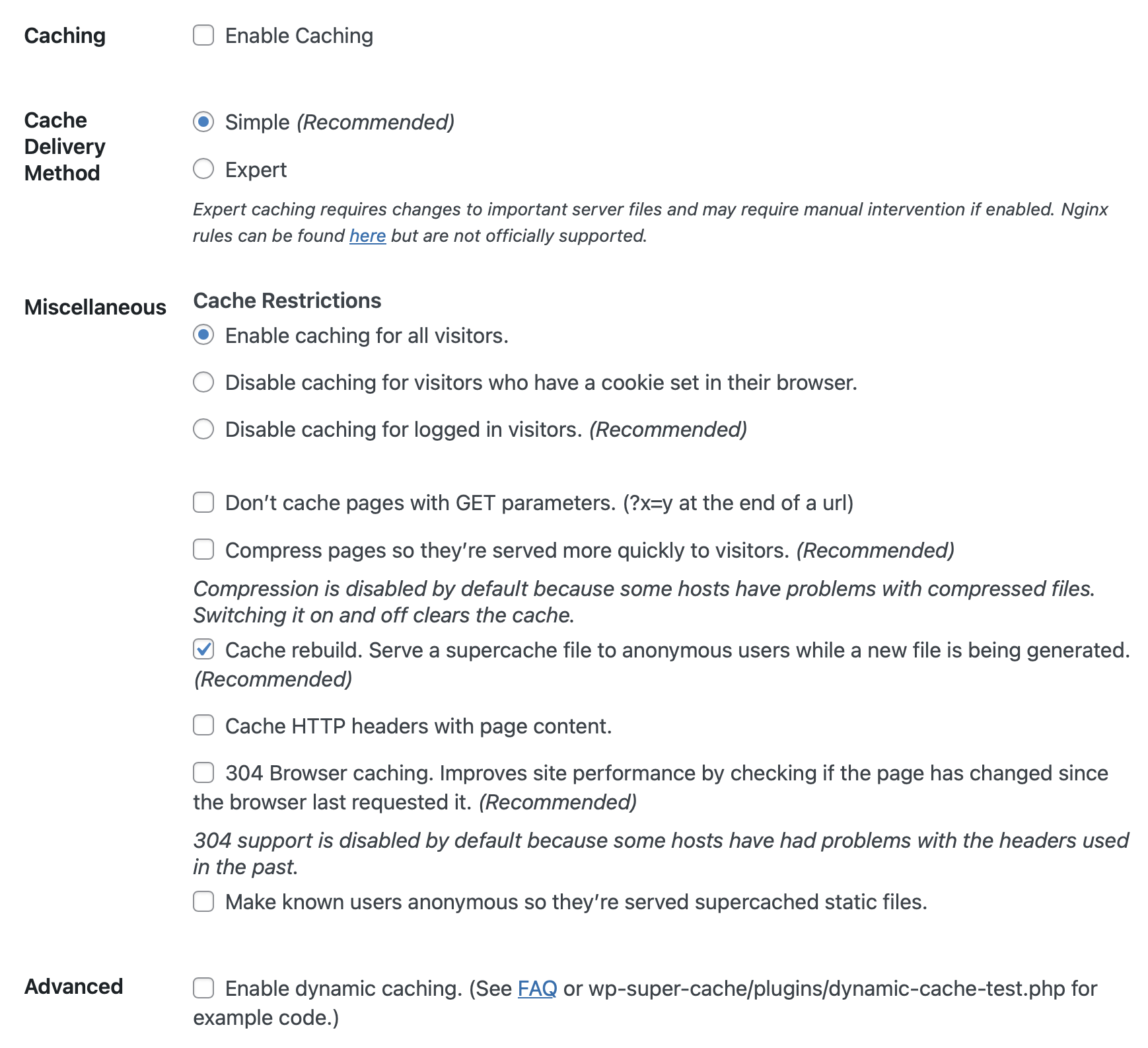 WP Fastest Cache has over one million active installations. It’s easy to use and offers a wide range of settings, all accessible via simple checkboxes.