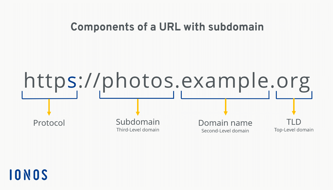 A subdomain is a component of a domain that is subordinate to the domain name, it is also called a second-level domain. Consequently, a subdomain can also be referred to as a third-level domain. It precedes the domain name and is separated by a period. The following graphic shows the subdomain’s placement in the example.org URL.