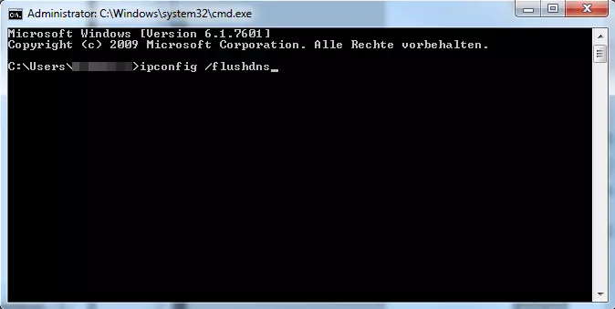 - Enter the command ipconfig /flushdns and confirm with enter. The tool implements the order and informs you about it with a short message.