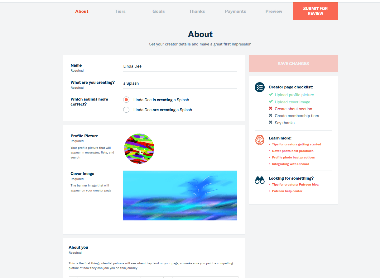 In the “Preview” tab you can see how your site will look. If you’d like to get a second opinion, you can send a shareable link to third-parties. If everything is to your satisfaction, click on the “Submit for Review” button to review your Patreon application. As soon as your project has been approved, you can publish your first post. Patreon supports the following content within the tool.
