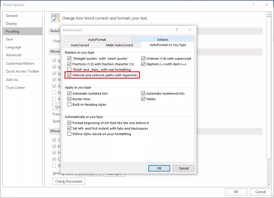 Microsoft Office products tend to automatically create hyperlinks whenever you enter a URL. If you often include web addresses in your texts but rarely want them displayed as hyperlinks, this constant switching around can cost time and energy. Fortunately, you have the option to disable this automatic feature. You can do so in the AutoCorrect Options under Proofing. Here, you can also configure whether you want obvious typos to be removed automatically.
