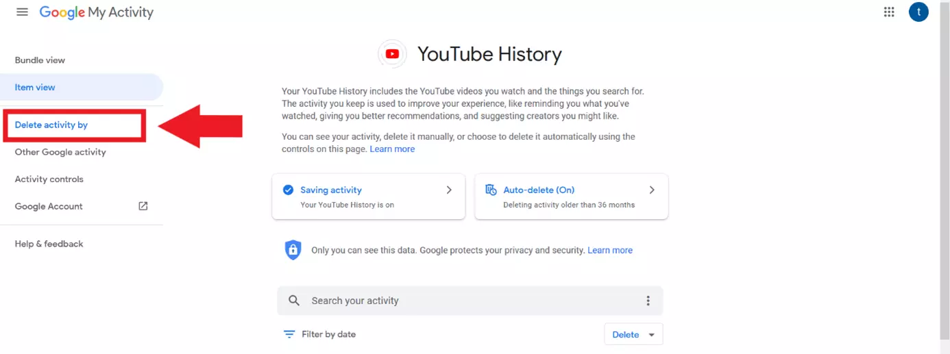 Step 3: Delete all YouTube history
