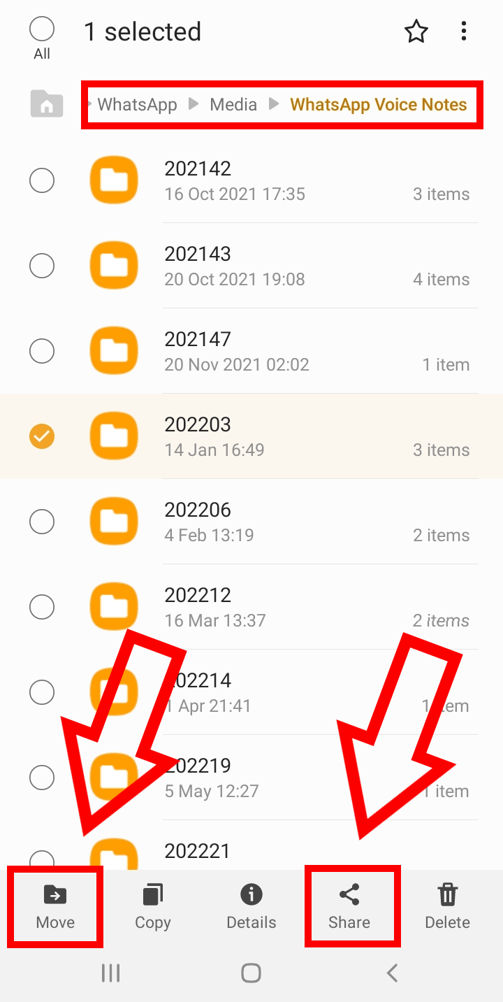 If you want to back up your voice messages, you can copy the entire WhatsApp Audio folder or select individual files from it and save them elsewhere, such as on an SD card. However, be careful not to move or delete the entire folder. Doing so may cause WhatsApp to stop functioning properly.