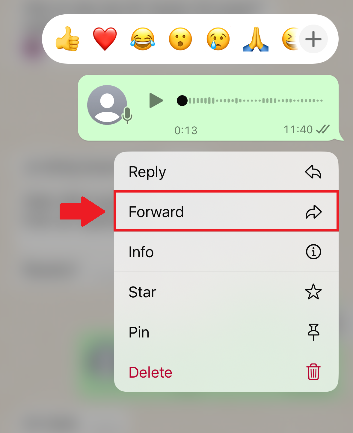 Step 1: Open the WhatsApp chat containing the voice message you want to save, and press and hold the message.