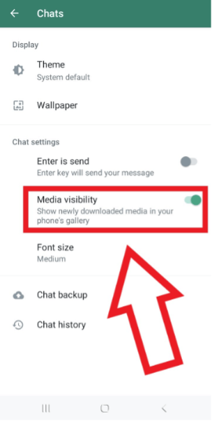 Step 2: Check the “Media visibility” option. If activated, WhatsApp photos are automatically saved under “WhatsApp Images” in your “Gallery” app.