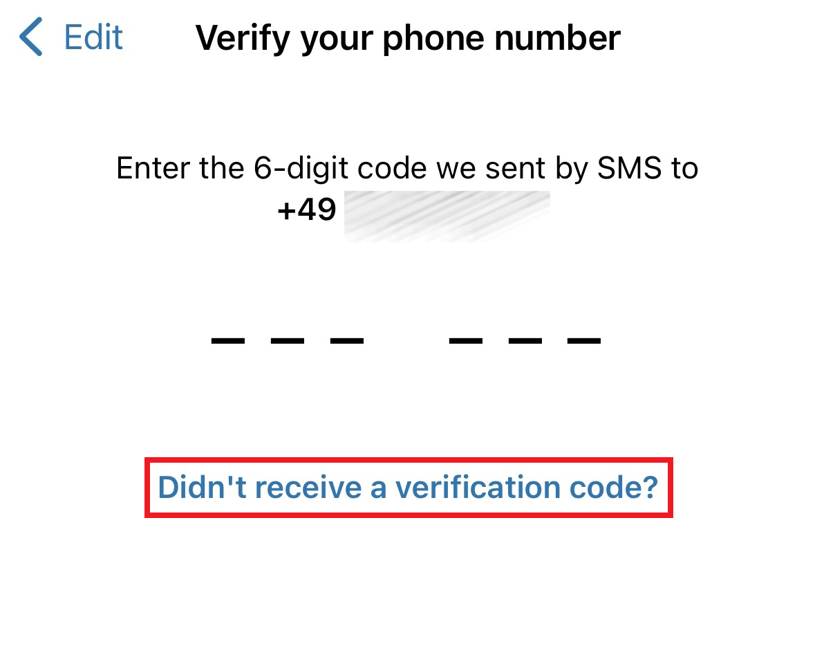 - Click on “Didn’t receive a verification code?” and then select the option for a voice call to receive the six-digit verification code.