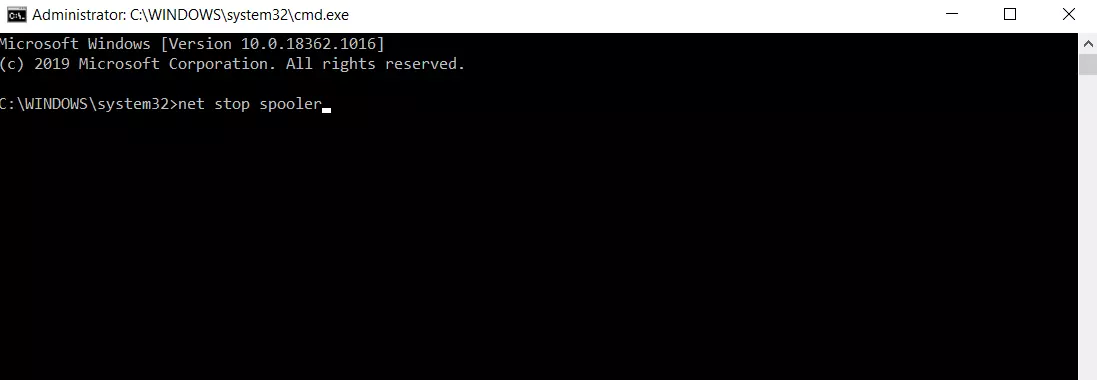 Step 2: In the opened command prompt window, enter the following CMD command: net stop spooler.