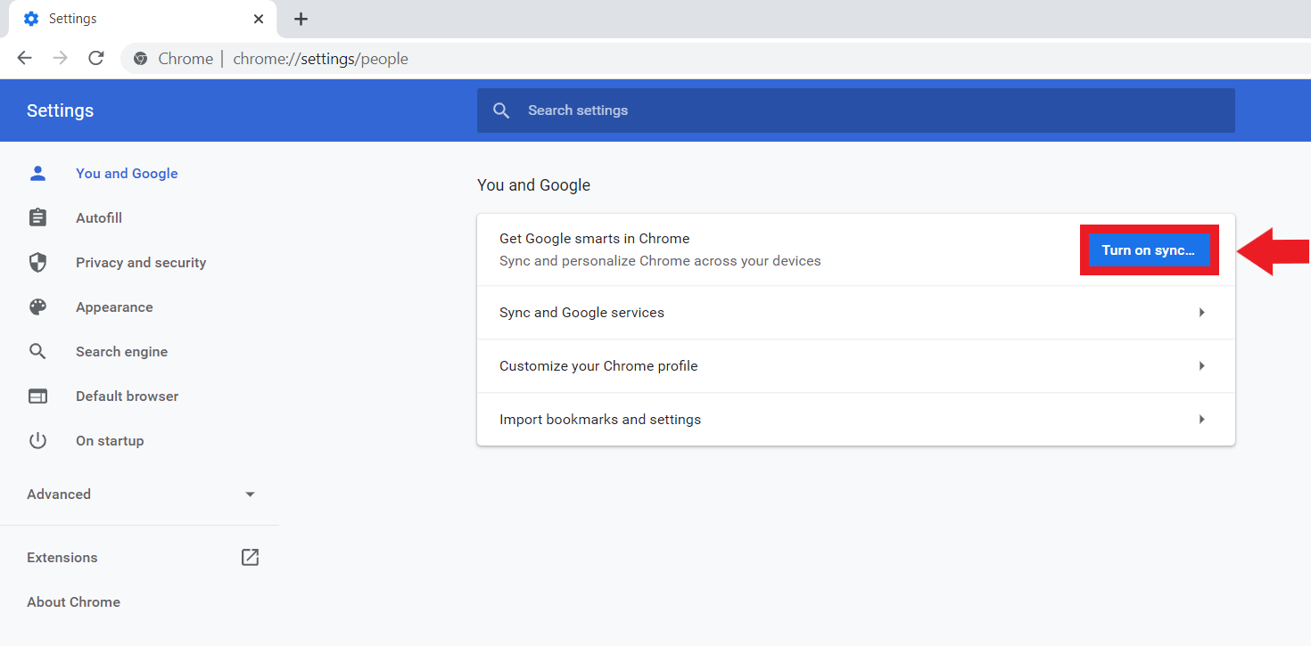 Step 8: If you want to use passwords across devices, enable Chrome syncing. This will save passwords to your Google account and sync them across all your devices. To do this, go to the “Turn on sync…” item under “You and Google”.