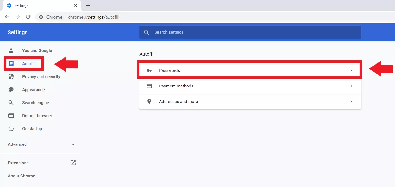 - In Google Chrome, click the three-dot icon to go to Settings > Autofill > Passwords.