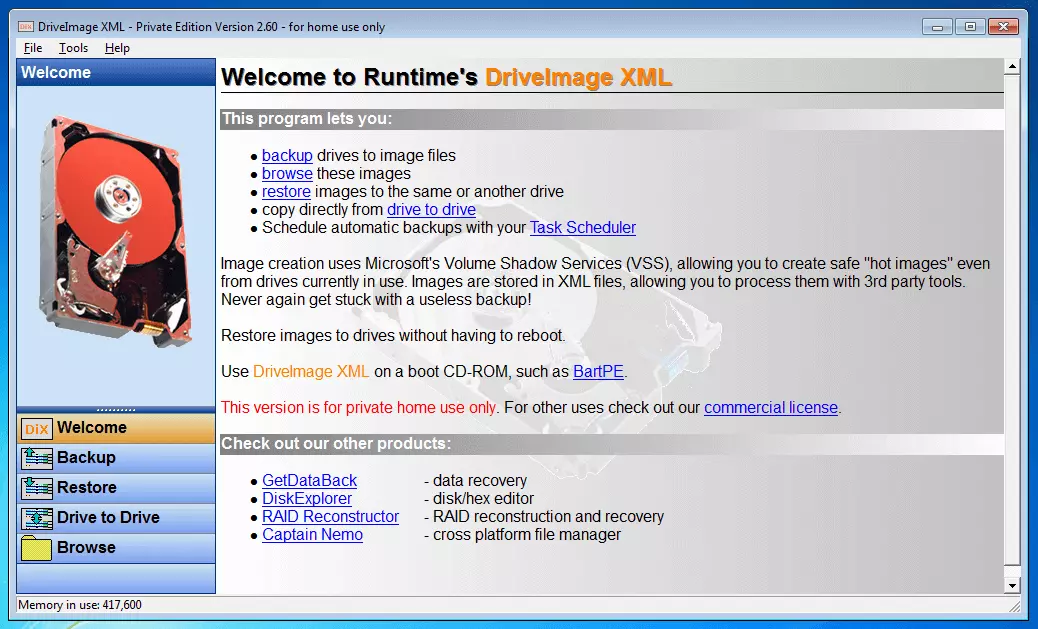 | DriveImage XML 2.60 | Aomei Backupper Standard 4.0.4 | O&O DiskImage 11.0 | |