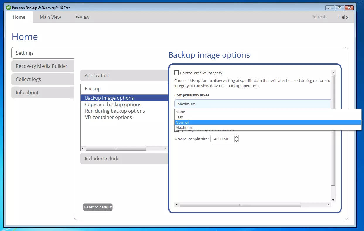Creating an image with freeware is never more comfortable than with Aomei Backupper. But the standard edition is missing advanced settings for backup plans. One plus though: The free license also includes commercial use.