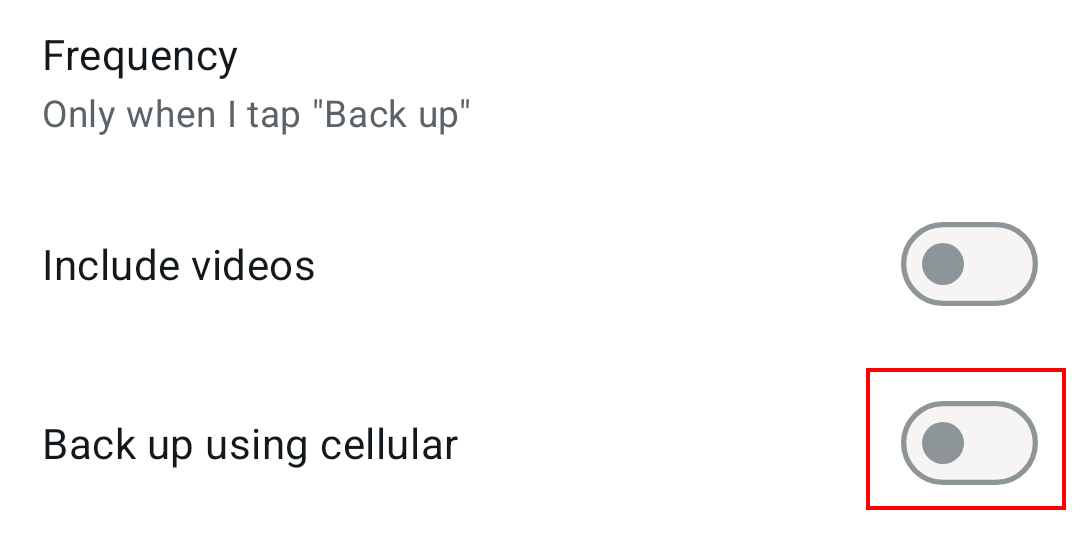 Step 8: Under “Back up over”, choose whether you want to save the backup to the cloud using Wi-Fi or a mobile data connection.