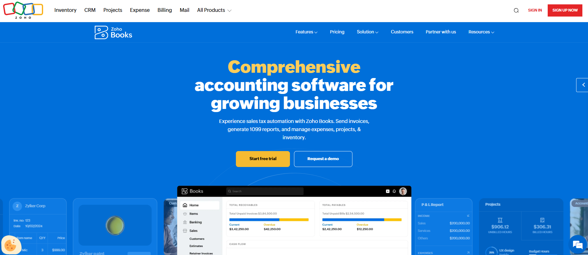 Zoho Books, headquartered in California, offers cloud-based accounting software designed for small to medium-sized businesses. The platform helps businesses manage their cash flow efficiently and provides essential accounting features. After a 14-day free trial, users can choose from three subscription plans: Standard ($20/month), Professional ($50/month), and Premium ($70/month). Those who opt for annual billing receive two months free. Even the Standard plan includes key features such as bank reconciliation, custom invoices, project management, timesheets, expense tracking, sales approval, and recurring transactions. While Zoho Books is known for its affordability, ease of use, and multilingual support, some users may find its third-party integrations limited compared to competitors, and it lacks built-in payroll services and budgeting tools.