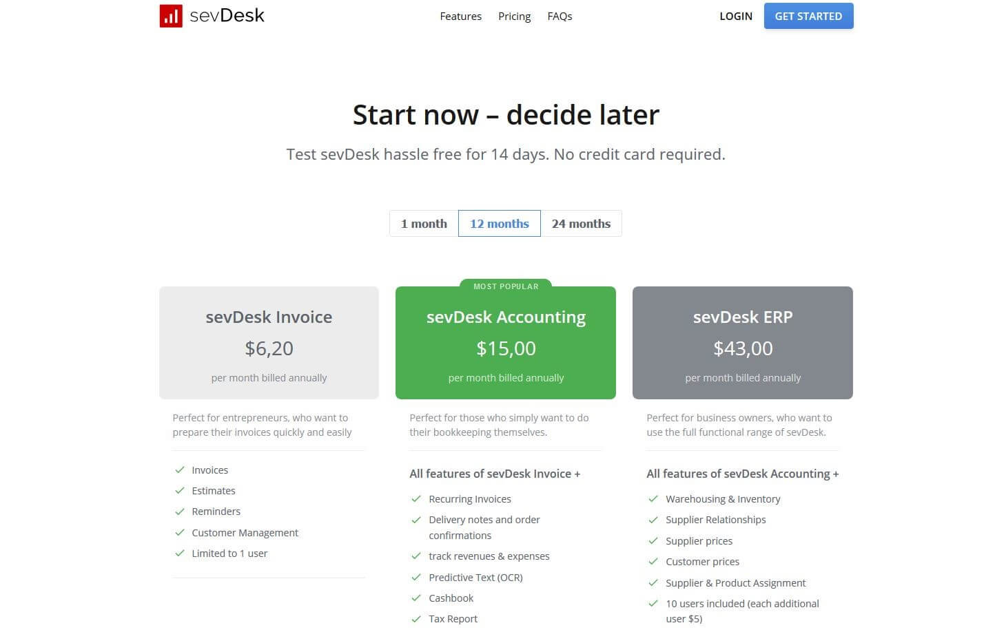 To use sevDesk, you must have a monthly sub­scrip­tion, which costs money. If you don’t need extensive features for book­keep­ing and man­age­ment, you will probably have all your needs met by the “invoice” package.