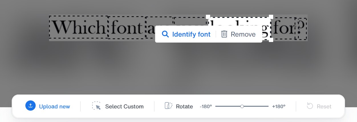 After uploading, you will have the option to crop your screenshot accordingly. In this step, WhatTheFont automatically identifies words in your sample. Check the assignment and make corrections if necessary.