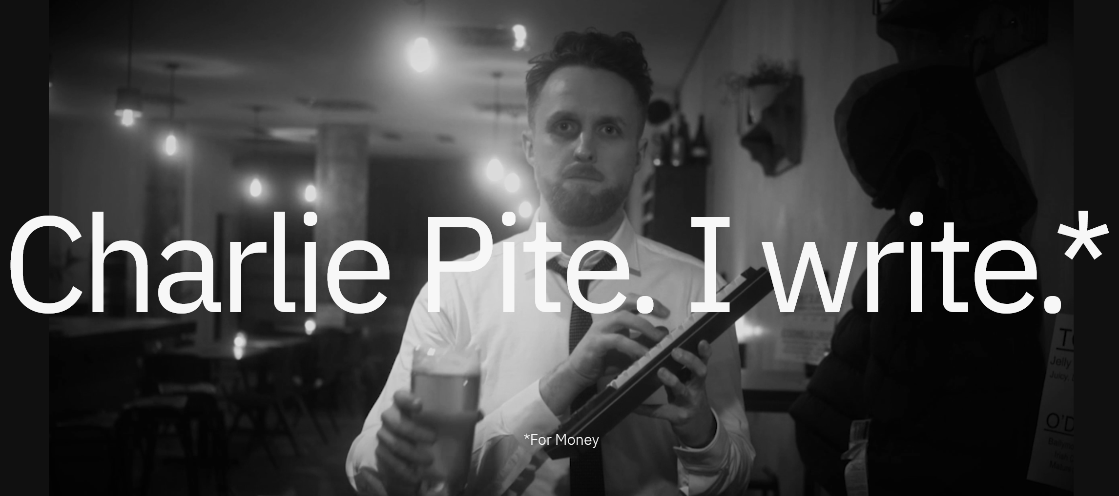 A one pager also gives individuals and freelancers the opportunity to briefly introduce themselves. The portfolio page of copywriter Charlie Pite demonstrates how to successfully capture the attention of website visitors with just one page.