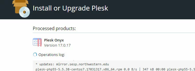 Plesk will begin installing the new version. This process can take a while, depending on the size and number of packages to be installed/upgraded.