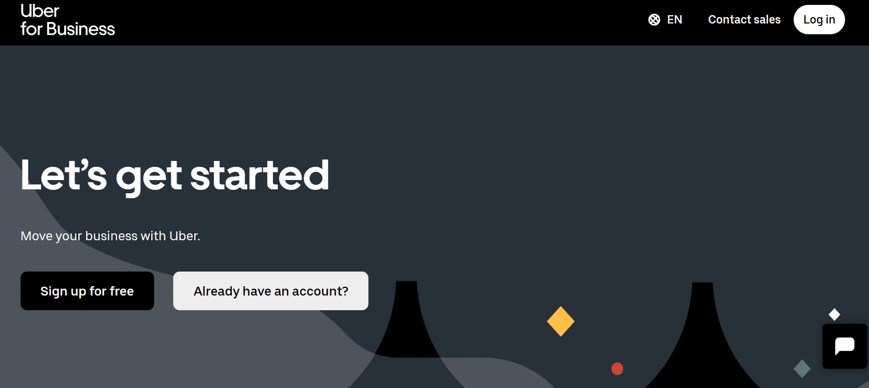 The Uber for Business sign-up page works well as a landing page because it combines clarity, focus, and ease of use. It starts with a direct headline and sub-headline that explain exactly what the service is about, followed by a clear “Sign up for free” CTA that lowers the barrier to entry. The page highlights benefits tailored to business users—like saving time on expense reporting, coordinating rides and payments from a single account, and driving customer engagement with vouchers—which makes the value proposition highly relevant. The design is simple and uncluttered, keeping the focus on conversion, while reassurance elements such as legal links, privacy policies, and language options build trust and accessibility. Altogether, it effectively addresses key business pain points while guiding visitors toward the next step without distraction.