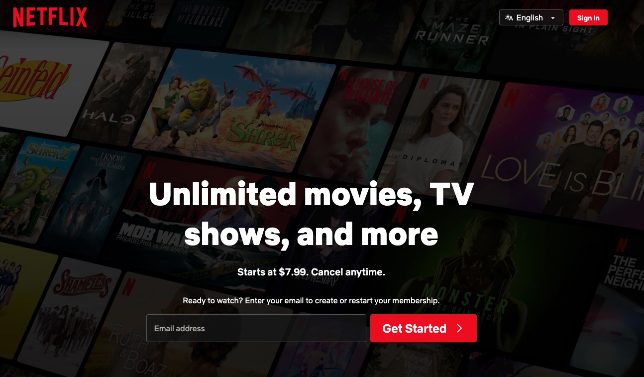 - A clearly visible call-to-action provides a clear incentive to act: “Ready to watch? Enter your email to create or restart your membership.”