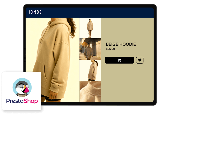 Security is a priority with IONOS which is why we give you the tools to create a secure online store: all PrestaShop hosting offers from IONOS include an SSL certificate. Your website will therefore run with https protocol meaning that bank transactions, user names and data transfer will be secure. You can therefore focus on creating your online store in the knowledge that your visitors will have a secure customer space.