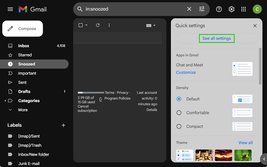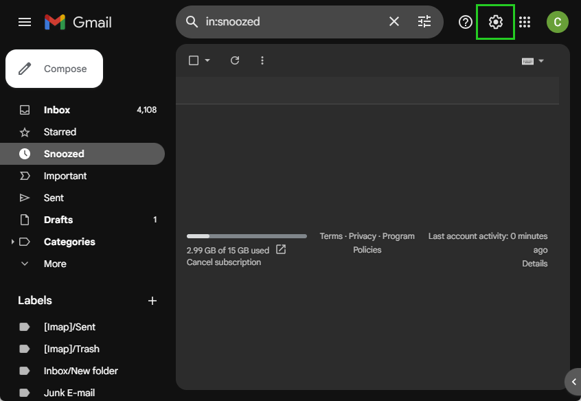 Click on the gear icon in the top right-hand corner of your Gmail account.