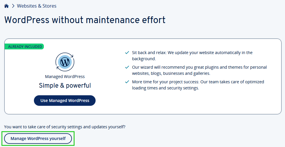 Optional: If you have not yet registered a domain with us, you can also use a system domain. As soon as you register a domain or move to us, you can subsequently connect your WordPress website to this domain.