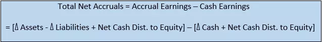 The section started with the basic total net accruals equation and then went on to define accrual earnings and cash earnings. The total net accruals can be substituted into this equation now that these definitions are known: